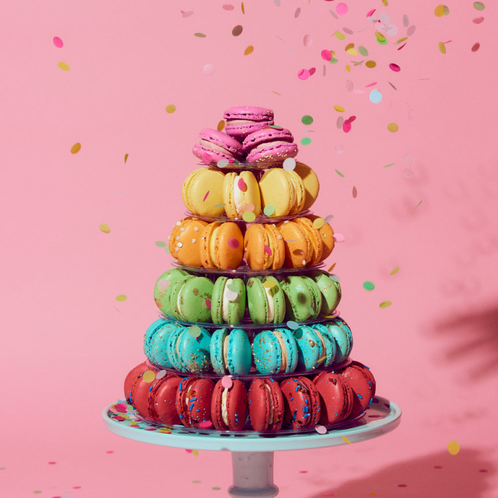 All our classic macarons contain tree nuts, eggs, and dairy. Many of them may contain soy, wheat, or sesame. Our kitchen has various nuts present at all times and the risk of cross-contamination is high. If you have a high sensitivity to any types of nut, we sadly suggest you avoid our macarons