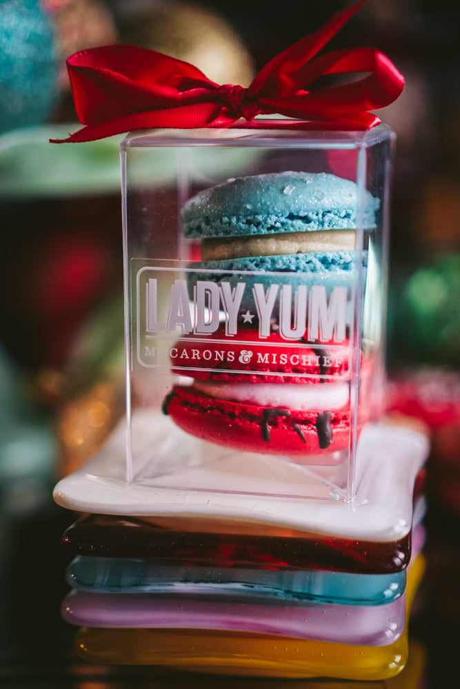 Our beautiful Holiday Macaron Gift Boxes are the perfect gift to ship to family and friends in all 50 states for the Holidays. Also be sure to grab a pack for your own table or sweet indulgence this year!